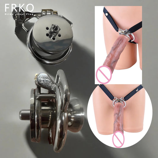 Strapon Button Strap Cage With Large Real Dildo